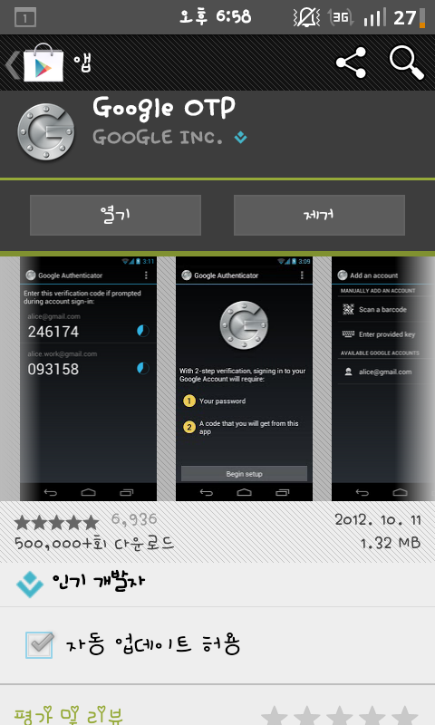 구글 마켓에서 google OTP를 설치합니다.