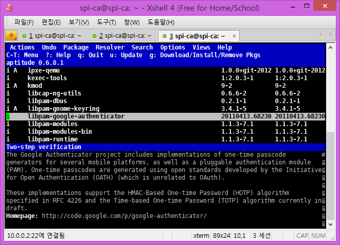 일단 libpam-google-authentic 패키지를 설치합니다. synaptic 이나 아래와 같이 루트권한 터미널에서