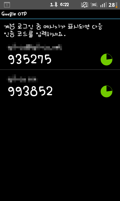 게임 인증처럼 구글계정에 로그인 할때 안드로이드의 google OTP 인증번호를 이용하여 일회용 암호를 한번더 입력하는 방법 입니다.