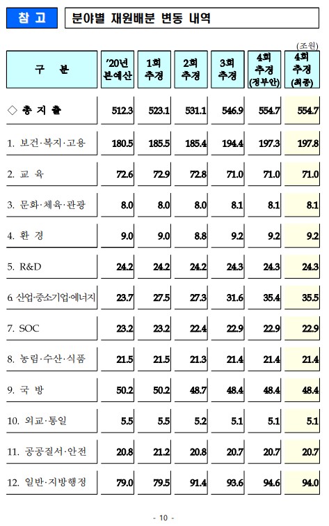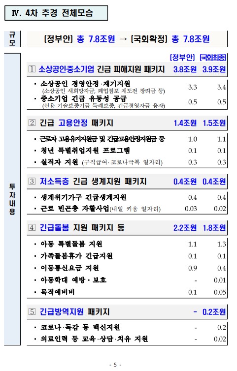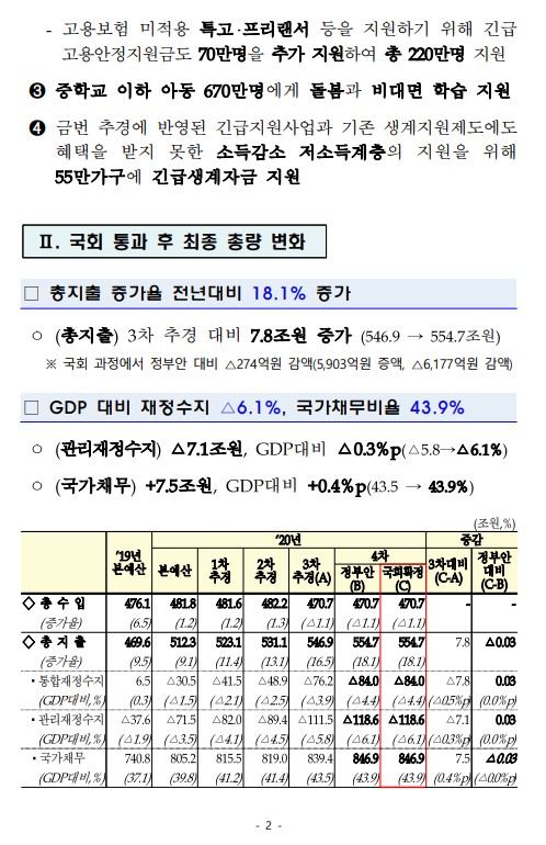 2020년도 제4회 추가경정예산 국회 확정 |