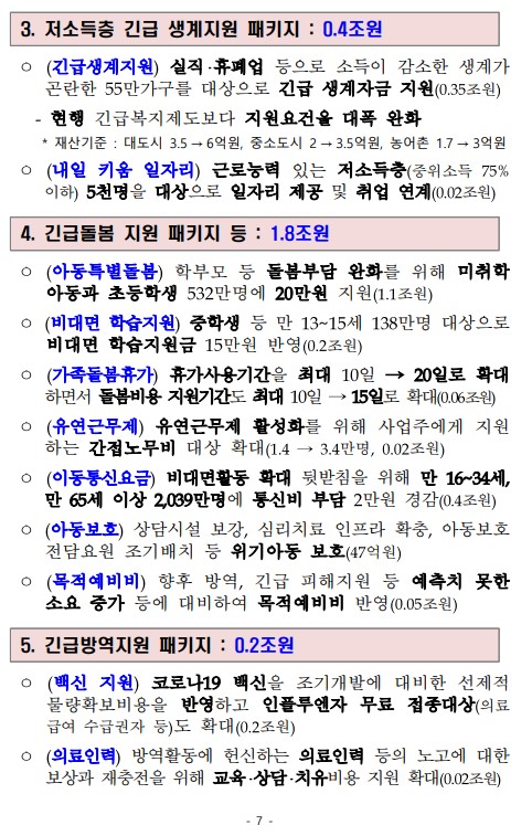 3. 저소득층 긴급 생계지원 패키지 : 0.4조원 |