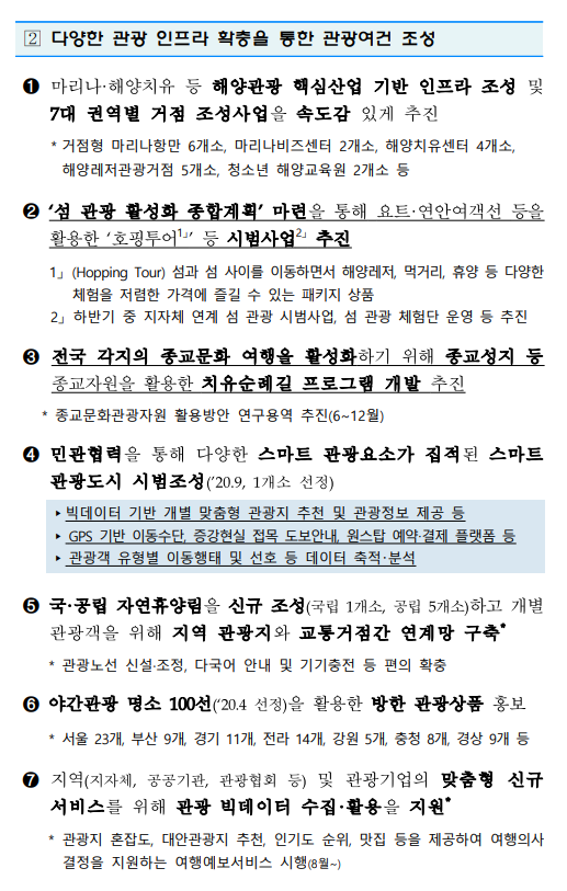- 숙박/여행/외식 : 코로나19 감염확산 상황을 고려해 재개시기 검토