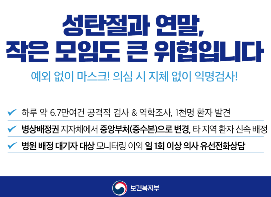 곧 다가올 성탄절과 새해 등 연말연시 연휴에도 지인모임이나 외출을 삼가토록 해야할 것입니다.