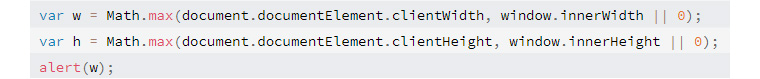 이후 대부분의 모바일 브라우저 Virtual Viewport는 980px로 고정되었습니다. (보시다시피, virtual viewport는 실제 해상도가 320px, 1440px, 1080px인 다양한 장비들의 width를 같은 너비 기준으로 렌더링 합니다. 이 점은 모바일 웹페이지의 width, height 등을 작성할 때 참고하시기 바랍니다.) 그렇다면, 현재도 Virtual Viewport를 980px로 고정하는지 시뮬레이터에서 다음의 소스를 통해 확인해 보겠습니다.