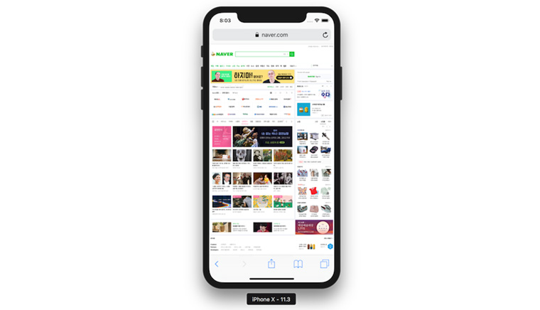일단 데스크톱용 네이버 사이트를 980px에서, 즉 모바일 화면으로 확인해 보겠습니다.