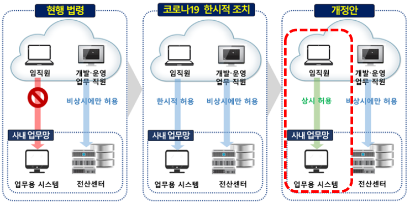 ● 비상시 제한적으로 외부망에서 내부망으로 원격 접속 가능(세칙 제2조의2제2항제3호)