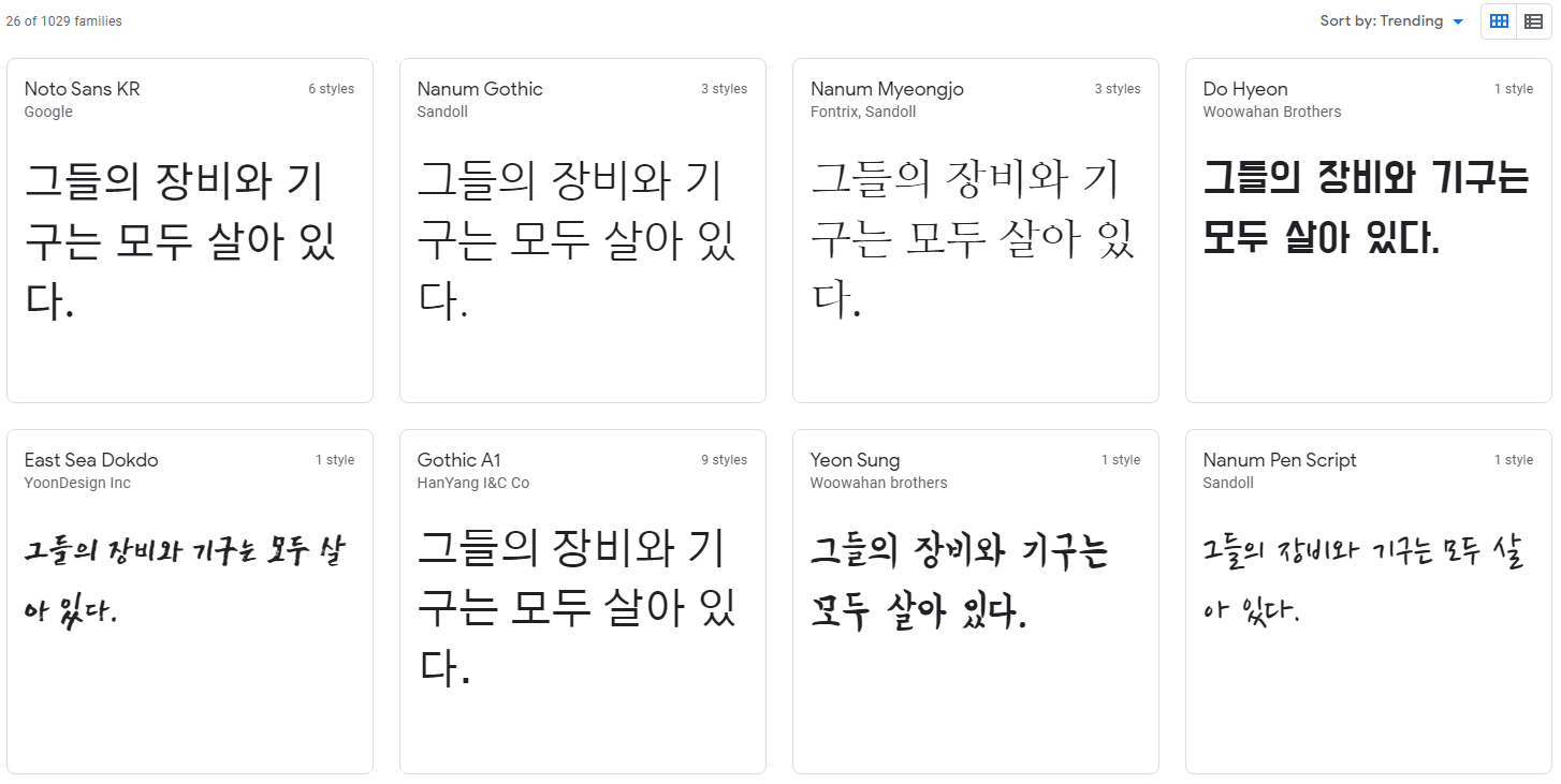 3. 한글폰트 26개 중 원하는 폰트 선택