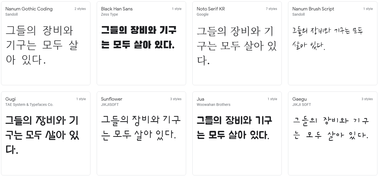 홈페이지나 블로그를 만들 때 한글 폰트를 무료로 아주 간단하게 적용할 수 있다.
