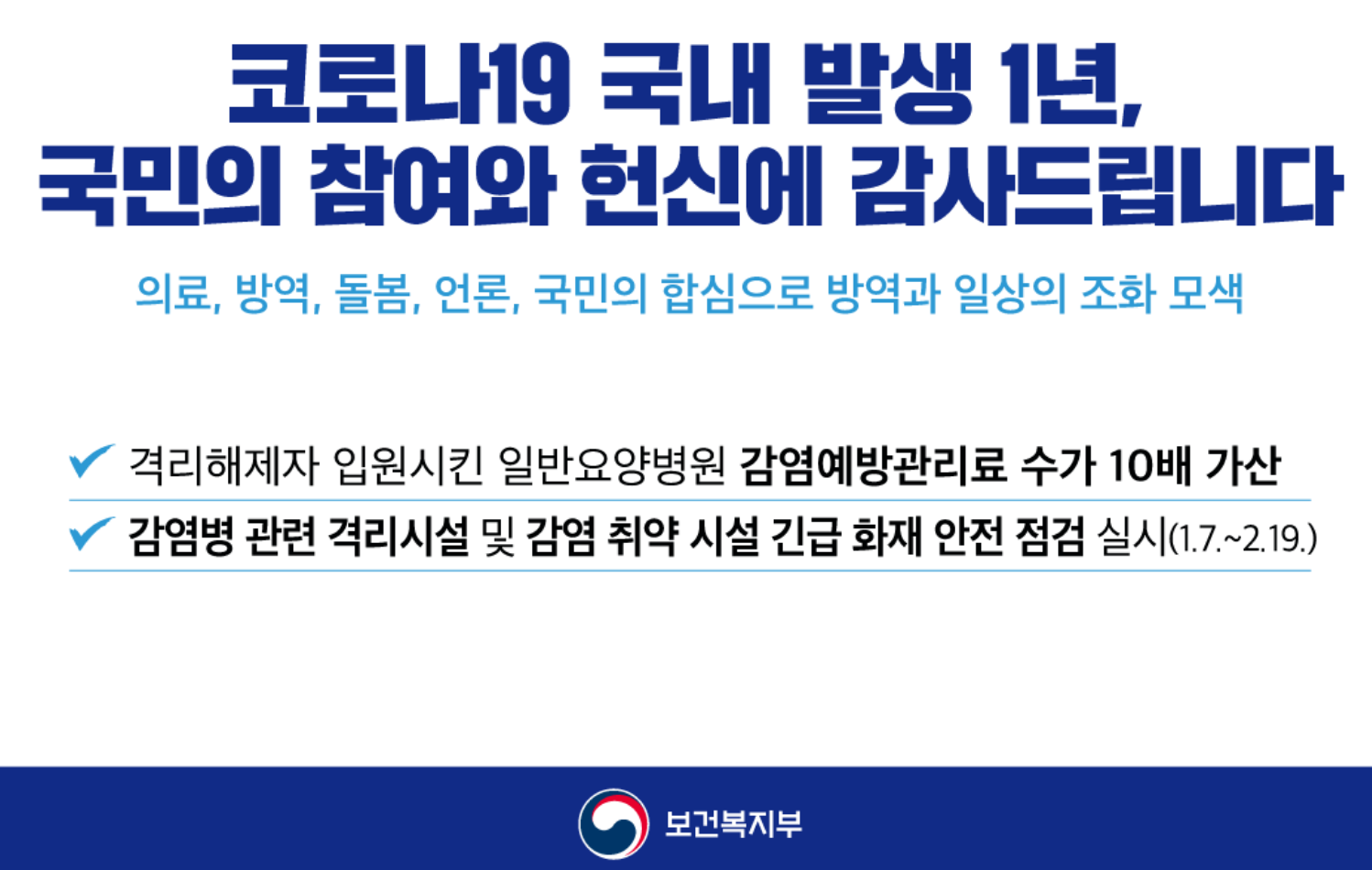 국내 코로나19 바이러스 환자는 지난해 2020년 1월 20일 처음 발생해서 1년이 되는 날,