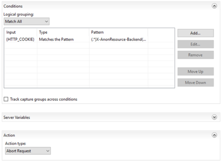 - C:\inetpub\wwwroot\web.config 혹은 Default Web Site의 IIS UI에서 Re-Write Rule 확인
