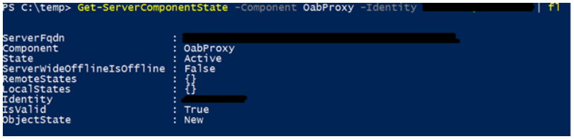 ※ Get-ServerComponentState –Component OabProxy –Identity “ComputerName” | fl