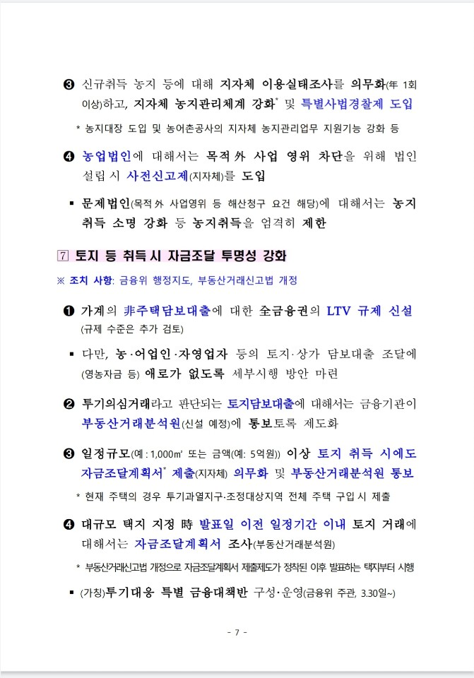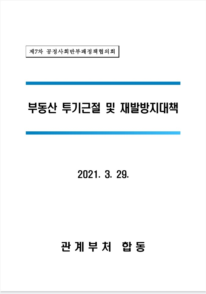 정부는 3.29일 대통령 주재 제 7차 공정사회 반부패정책협의회에서 「부동산 투기근절 및 재발방지대책」을 논의·확정하였습니다.