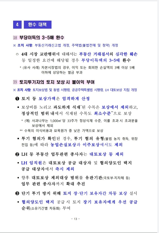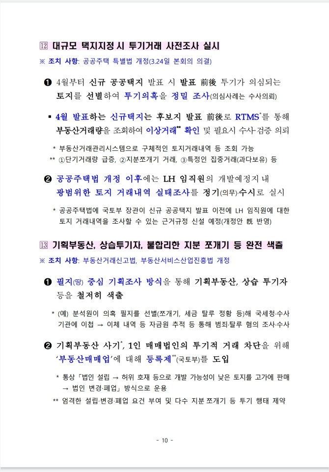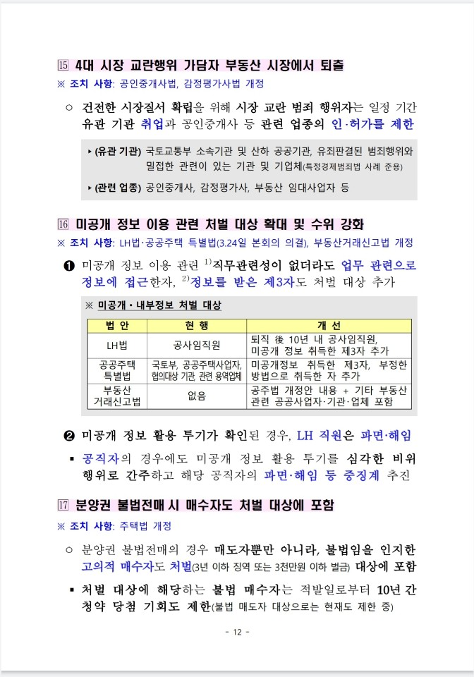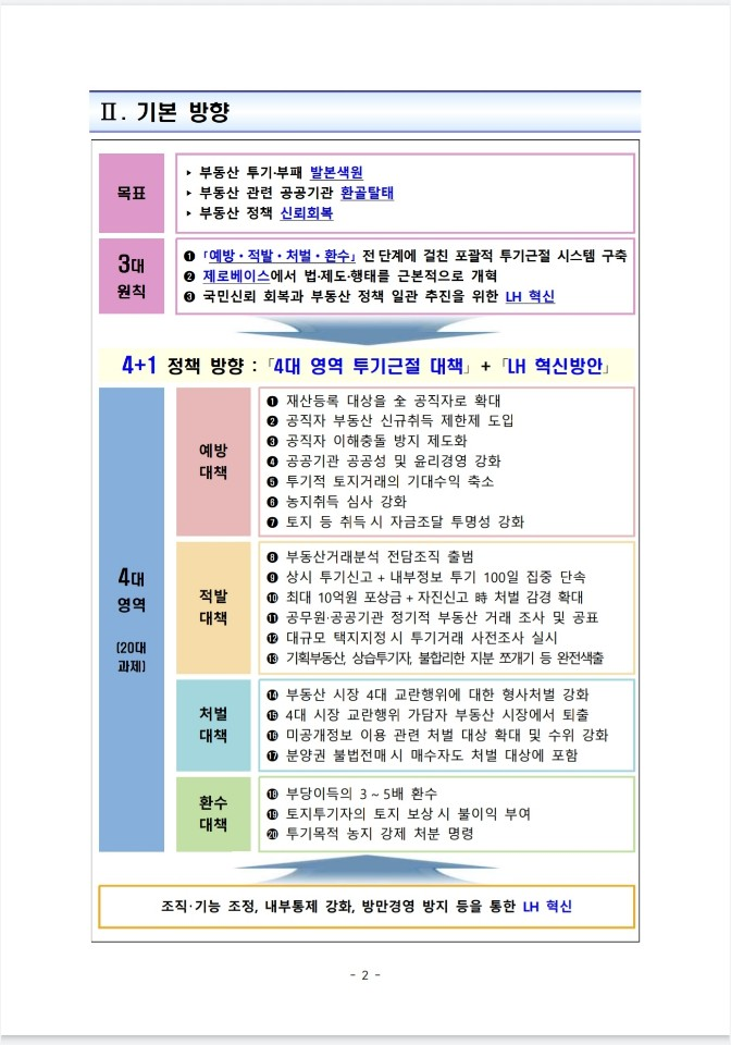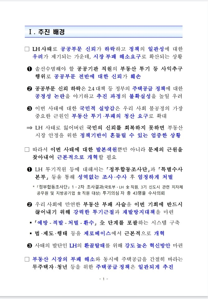 LH 사태를 계기로 우리 사회에 만연한 부동산 부패 사슬을 끊어내고 부동산 투기가 발붙이지 못하도록 근본적인 대책을 마련하였습니다.