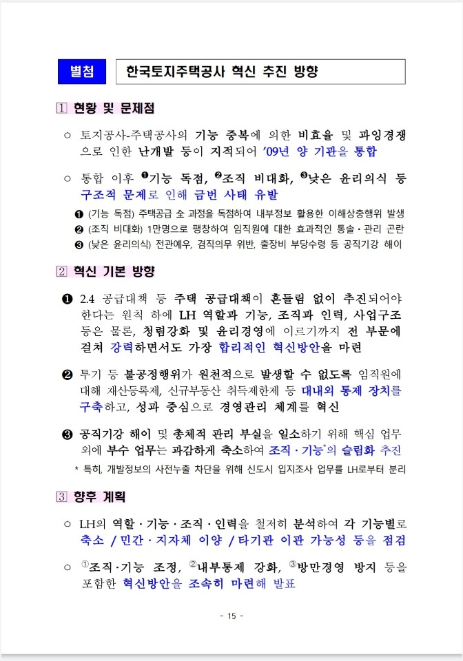 LH 사태를 계기로 우리 사회에 만연한 부동산 부패 사슬을 끊어내고 부동산 투기가 발붙이지 못하도록 근본적인 대책을 마련하였습니다.