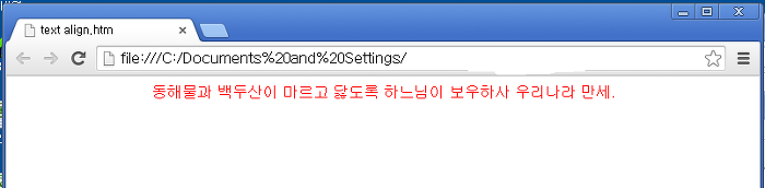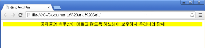 실행 화면 : <span>문자열 바로 위에 <div>에서 text-align 속성을 적용했습니다. 문자열이 가로로 정렬됩니다.