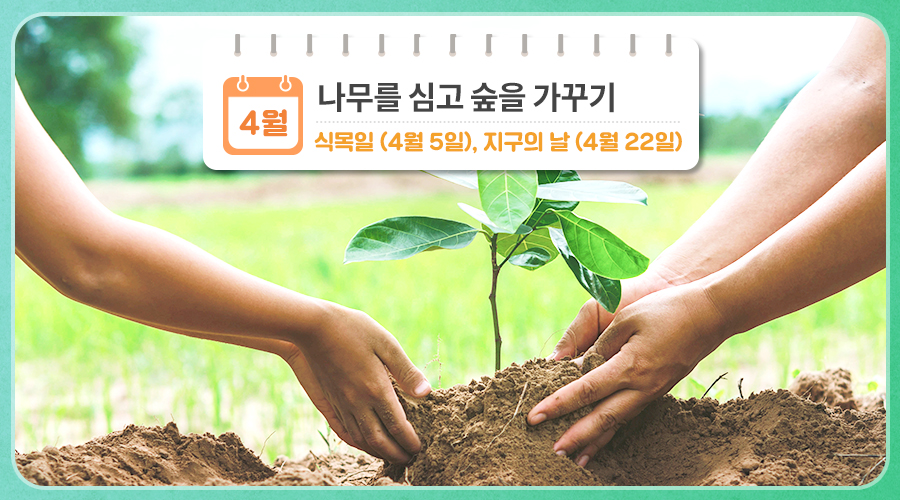 4월에는 식목일(4월 5일)과 지구의 날(4월 22일)이 있습니다.