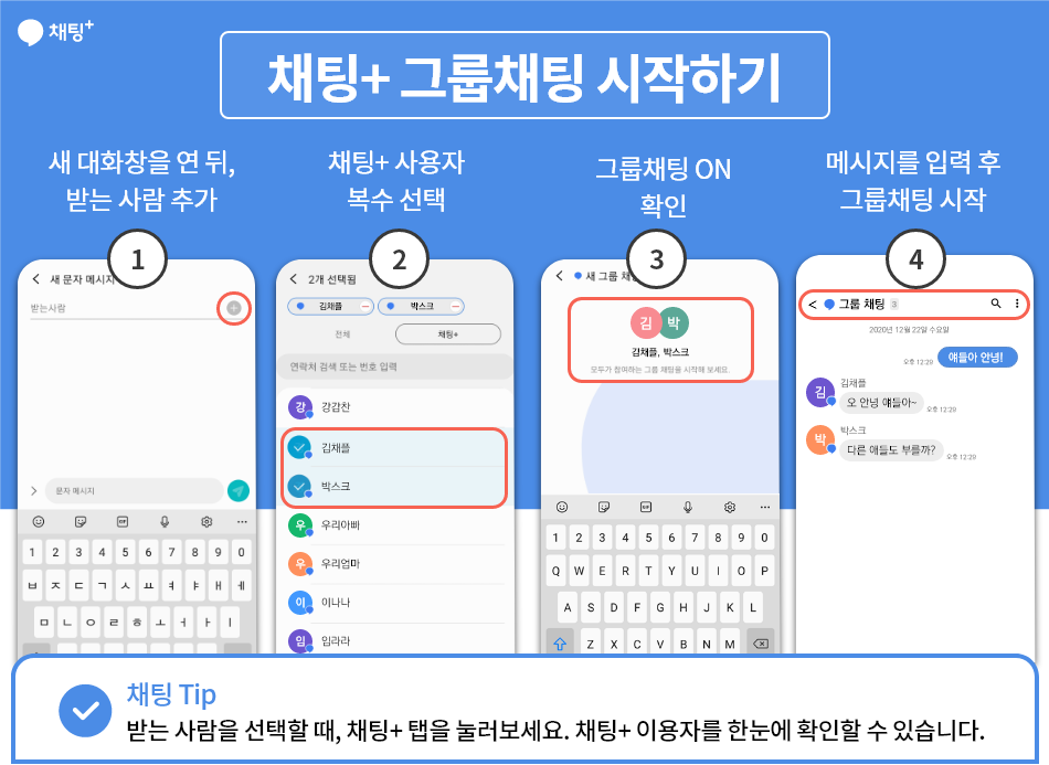 2) 채팅+ 사용자를 2명 이상 선택해주세요.