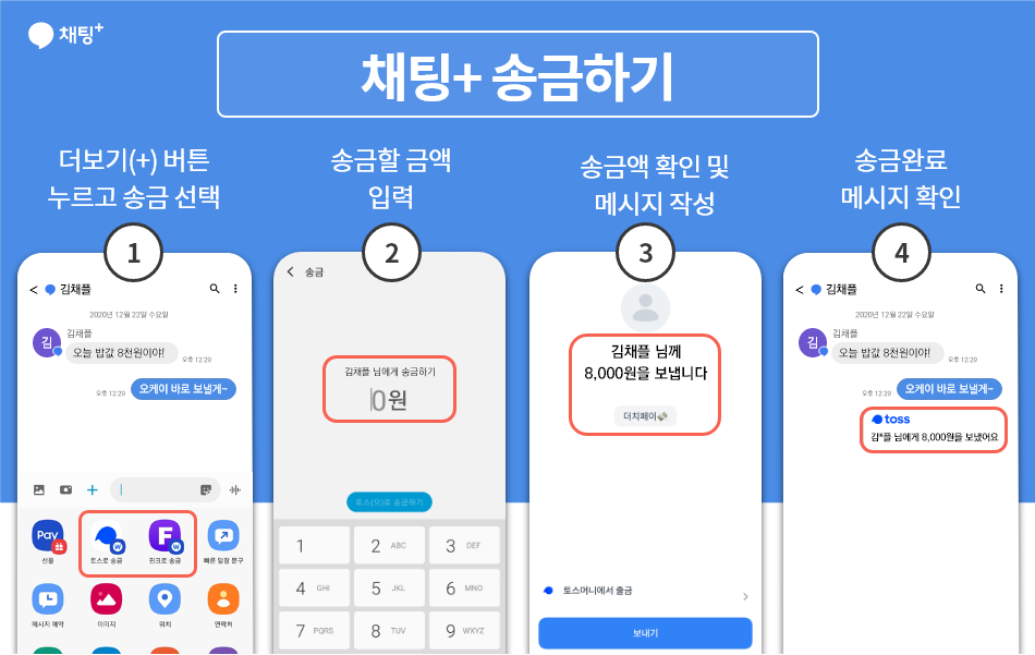 채팅+에서 간편하게 송금하기를 이용해보세요.