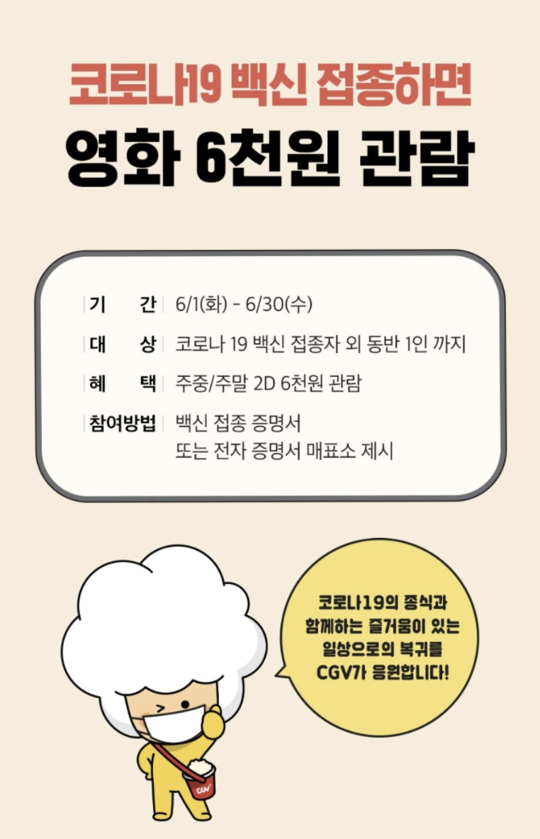 CGV 영화관람권이 6월 한 달 동안 6천원입니다.