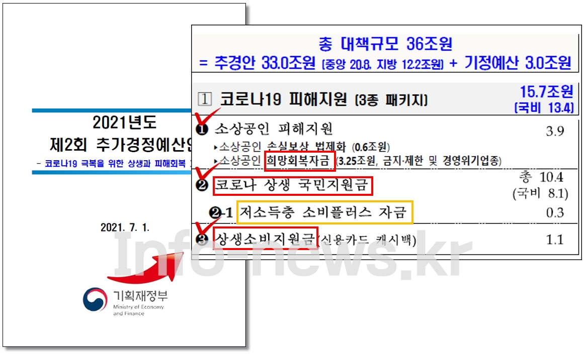 정부가 5차 재난지원금 재원을 위한 33조원 규모 2차 추가경정예산(추경)안을 7월 1일(목)에 발표하였다.
