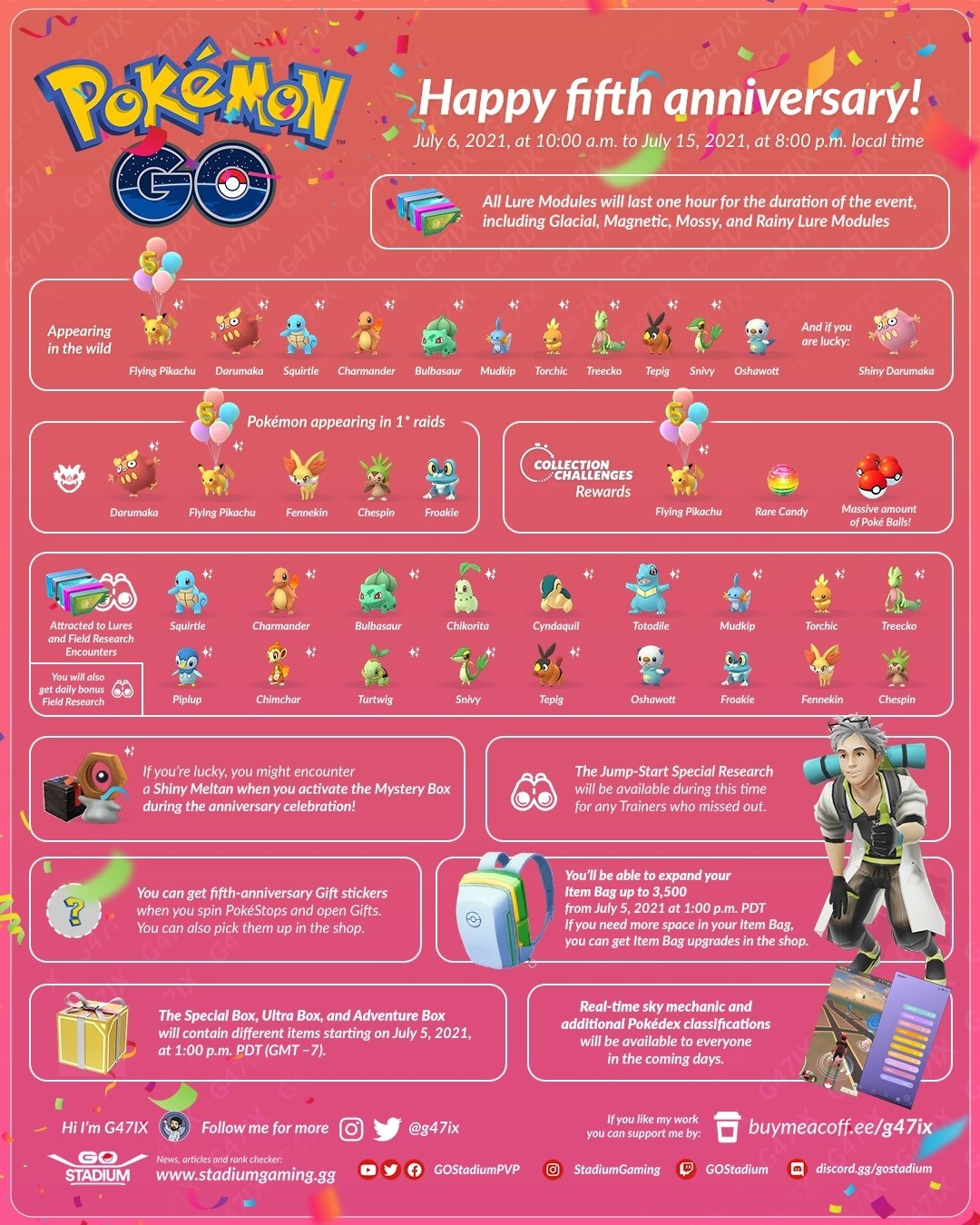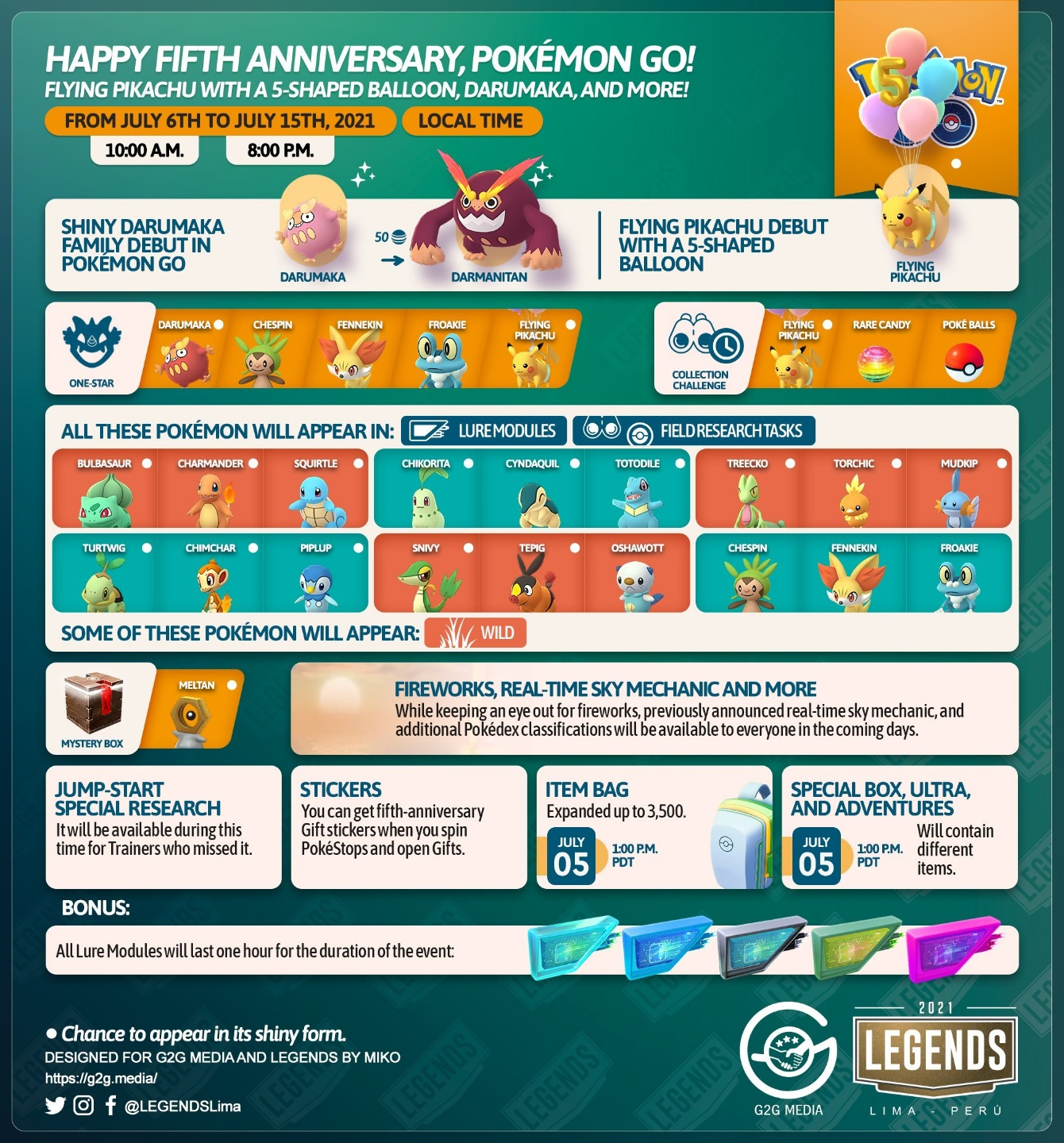 - 작년에 “Pokémon GO Fest”에서 나온 불꽃놀이을 기억하시나요? 5주년을 기념하여 올해도 맵에서 다시 돌아옵니다!