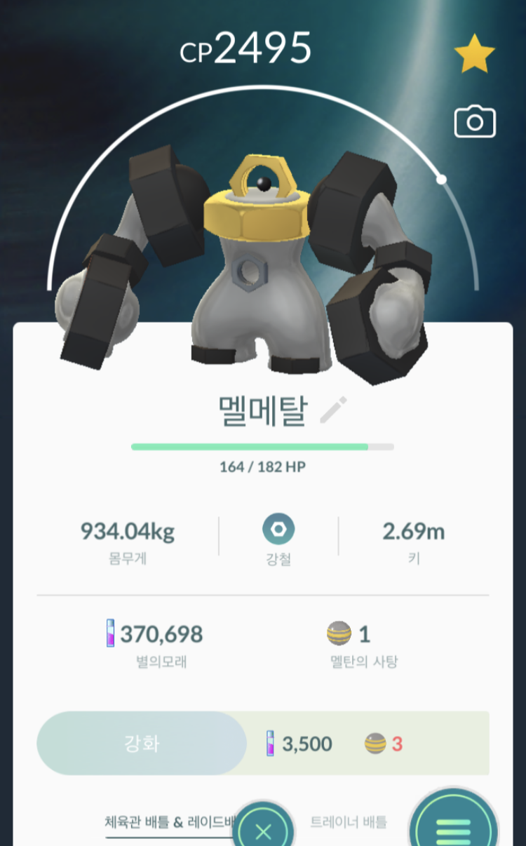 • 멜탄의 사탕을 400개 모아서 가장 좋은 개체를 멜메탈로 진화한다.