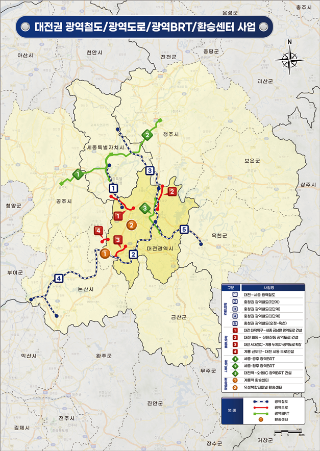【대전권 광역철도/광역도로/광역BRT/환승센터 계획도】