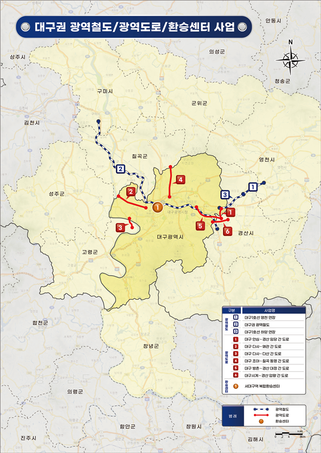 | 광역철도 | ‧ 대구1호선 영천 연장 (경산 하양역~영천시) |