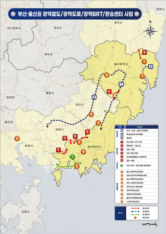 【부산․울산권 광역철도/광역도로/광역BRT/환승센터 계획도】
