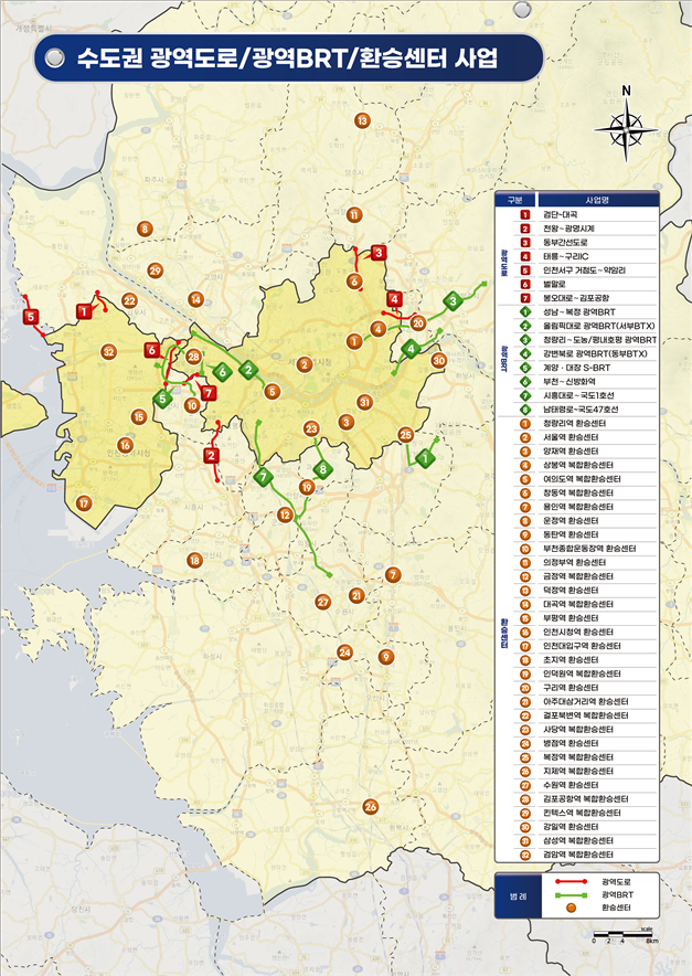 【수도권 광역도로‧광역BRT‧환승센터 계획도】