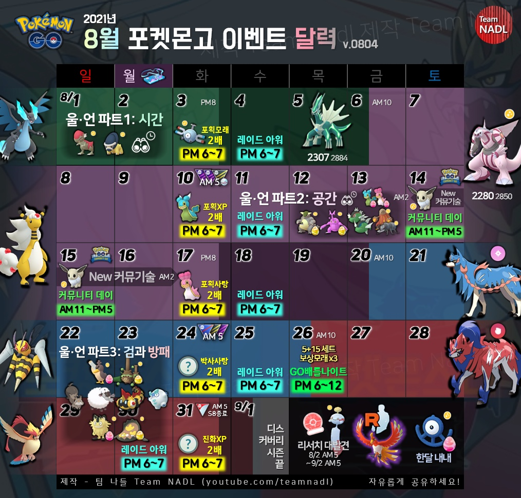 포켓몬고 8월 이벤트 종합 일정표 및 보너스 보상