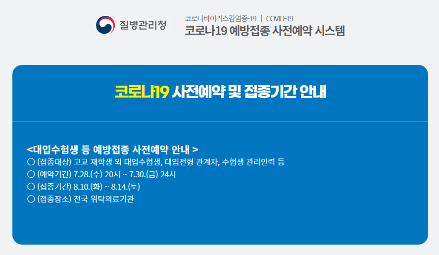 사전예약 바로가기 : https://ncvr.kdca.go.kr/