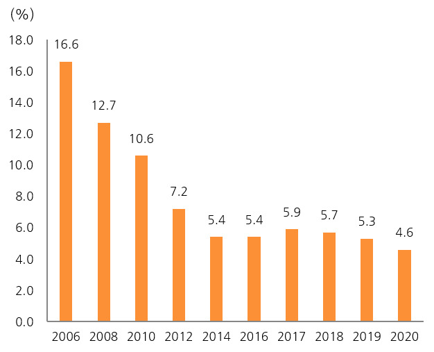 | 지 표 명 | ’06년 | ’10년 | ‘14년 | ‘16년 | ‘17년 | ‘18년 | ‘19년 | ‘20년 | ||