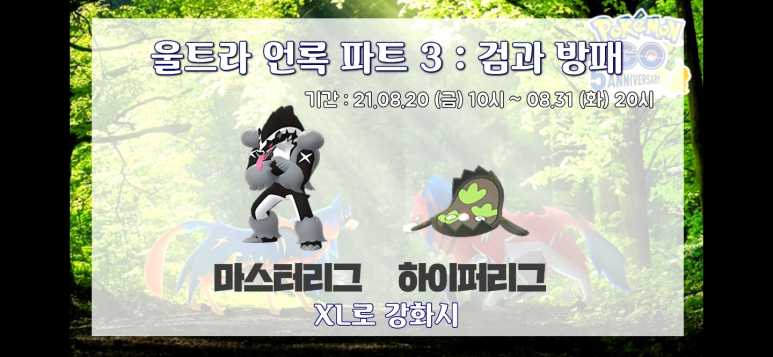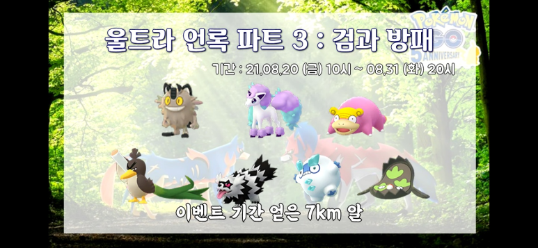 올해 울트라 언록 이벤트의 마지막 파트에서는 “가라르지방”에서 처음 발견된 전설의 포켓몬, “자시안(역전의 용사)”과 “자마젠타(역전의 용사)”가 첫 등장합니다! 이 포켓몬들을 "Pokémon GO"로 데려온 것은 얼마 전 “Pokémon GO Fest 2021”에서 장난을 쳤던 "후파"인 것 같습니다. 이외에도 "탐리스", "요씽리스", "우르", "배우르", "대여르"가 "Pokémon GO"에 찾아옵니다. 운이 좋으면 색이 다른 "나옹(가라르의 모습)", 색이 다른 "파오리(가라르의 모습)", 색이 다른 "또도가스(가라르의 모습)", 색이 다른 "메더(가라르의 모습)"를 만날 수 있습니다!