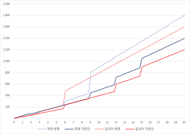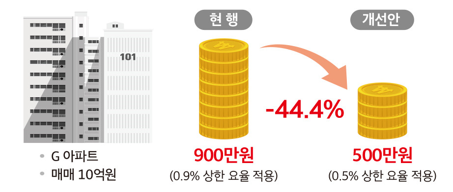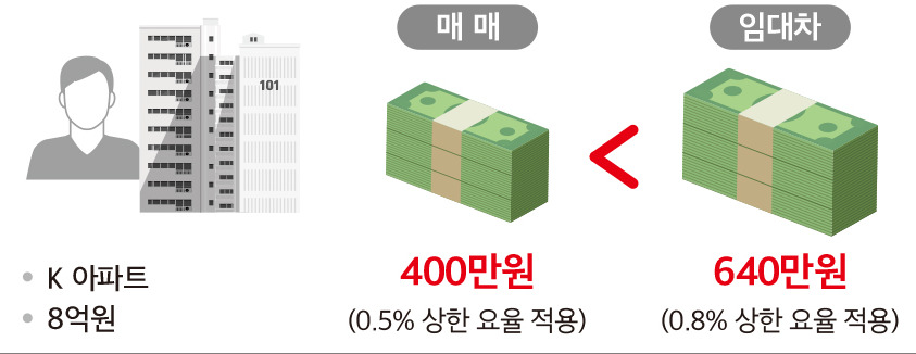 * 매매·임대차 역전(8억 거래 시) : (현행) 매매 400만원 < 임대차 640만원<240만원↑>