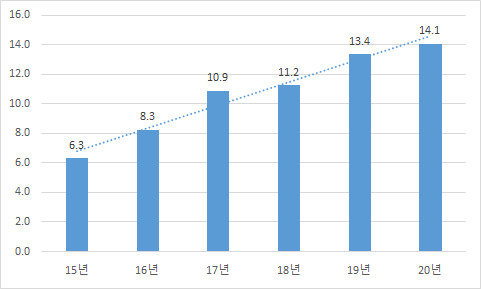 * 거래비중 변화(%) : (매매 6억 이상 중개거래) ‘15년 6.3% → ’20년 14.1%