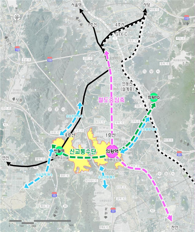 의왕역(1호선)  반월역(4호선) 복합환승시설 신설하여 철도교통 접근성 강화