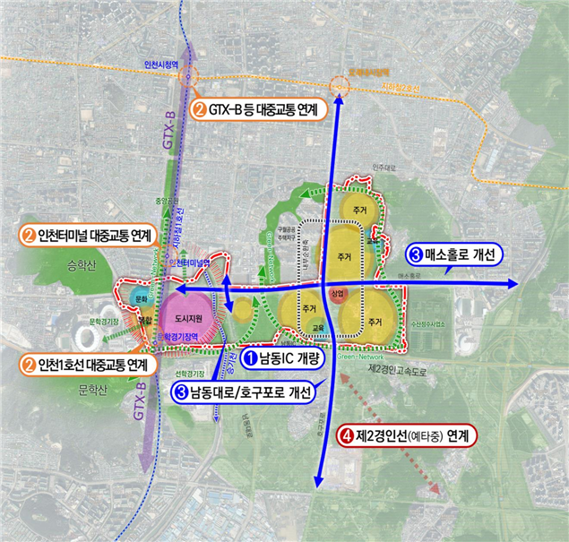 ㅇ 현재 계획 중인 광역철도 GTX-B, 제2경인선(예타 중)과 연계하는 신교통수단 도입 등 대중교통 연계 교통체계 구축