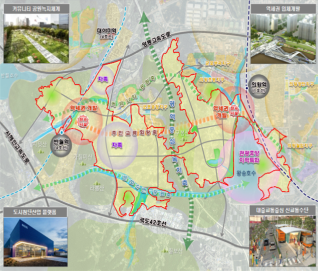 * 하천, 바람길 등을 이용한 순환형 공간 조성, 교통ㆍ환경ㆍ에너지ㆍ방범ㆍ원격근무 등 스마트시티 기능 도입
