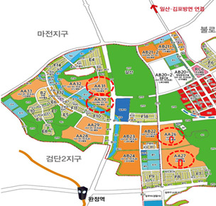 ㅇ (교통여건) 지구 외곽으로 수도권 제1순환 고속도로, 인천공항 고속도로, 올림픽대로, 강변북로 및 공항철도를 이용하여 서울과 수도권으로의 진출입이 용이하다. 또한 인천도시철도 1호선 연장선(’24년 말 예정)을 통해 인천 도심으로의 접근이 수월해진다.