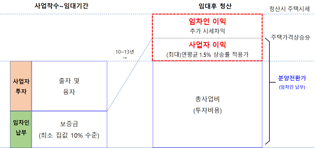 확정분양가격 이상의 시세차익이 발생할 경우  이익을 사업자가 아닌 임차인이 갖게 되는 이익공유 구조