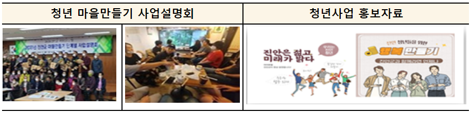 □ 전북 진안군은 청년계층 인구가 감소하고 있는 지역 특성을 고려하여, 청년 분양주택 등으로 구성된 진안군 청년마을을 조성하고, 자체 재원을 투입하여 진안청년 주거비용(월임대료, 15만원/월)을 지급하고 있다. 또한, 청년 일자리와 주거 복합개발을 위해 쉐어하우스와 창업공간이 결합된 청년주택(청년 with 꿀벌집)도 공급하고 있다.![]() |