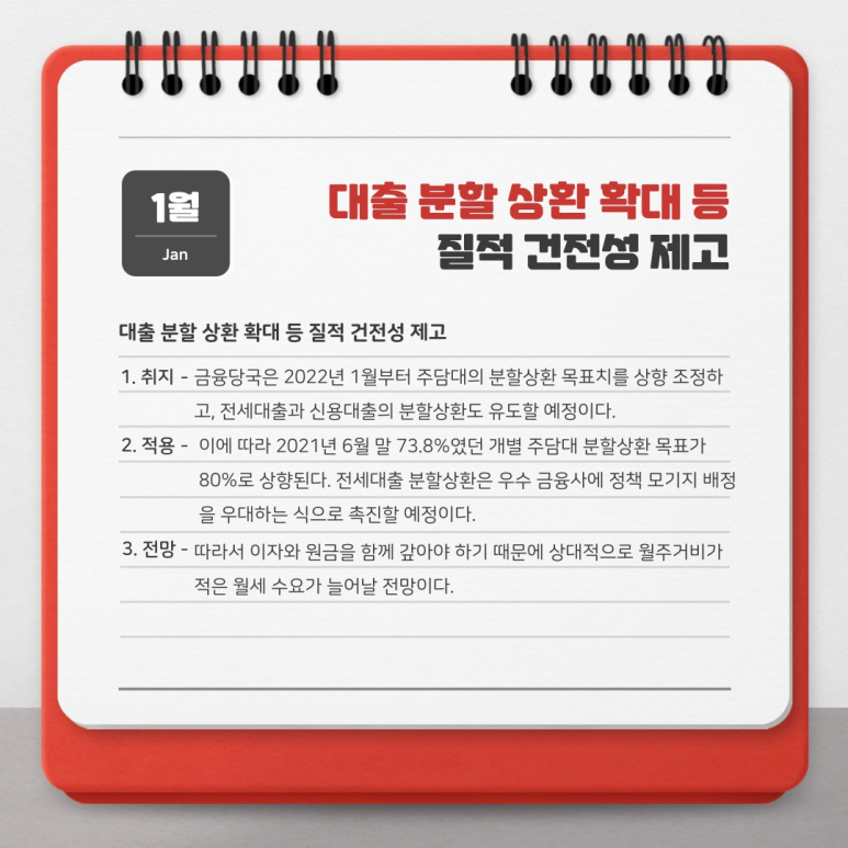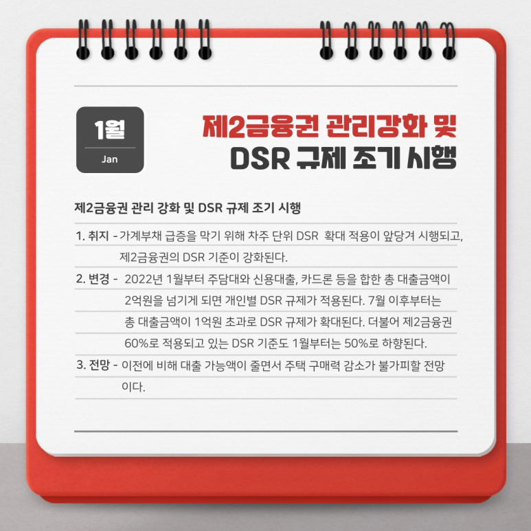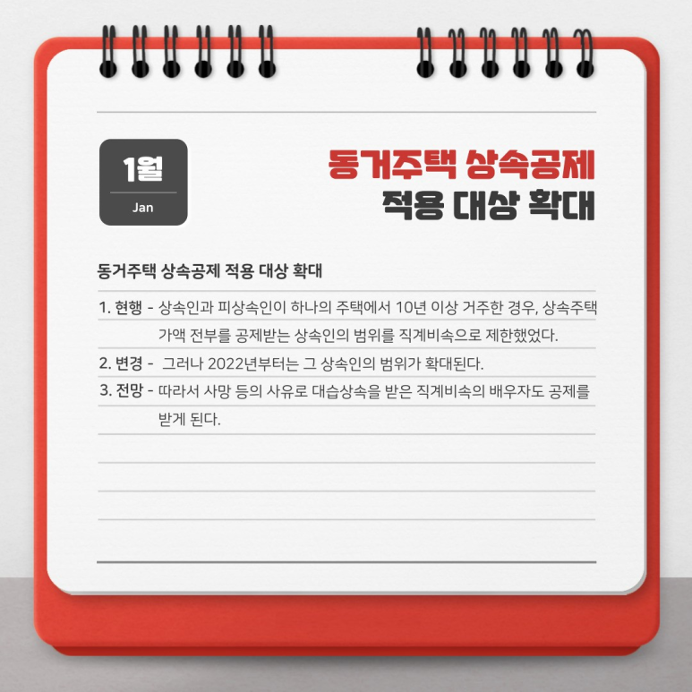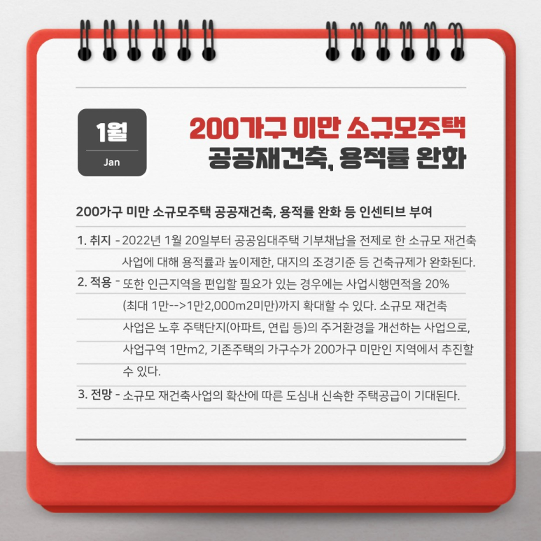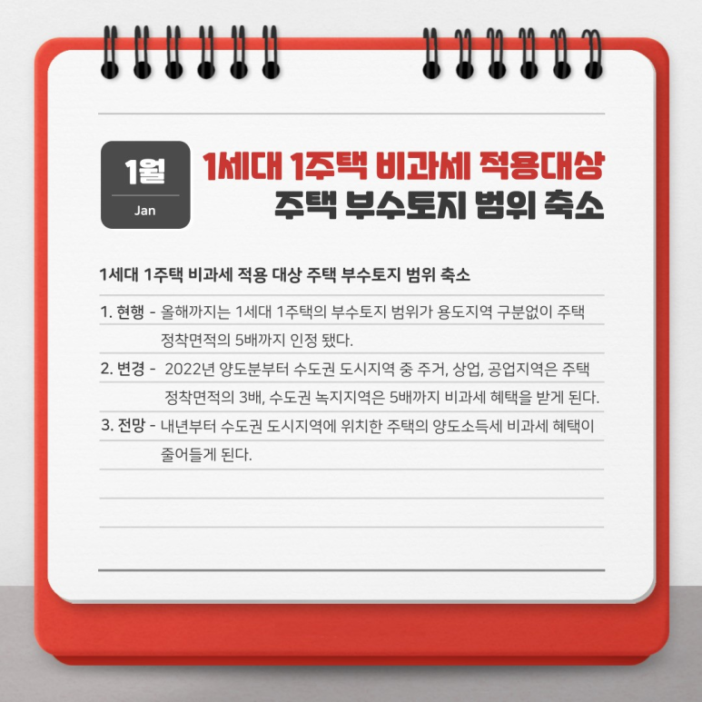 일상생활 (EveryDay) 2022년 부동산 제도 어떤게 바뀔까? by 날으는물고기 2021. 12. 20. 2022년 부동산 제도 어떤게 바뀔까? 728x90 2022년도 부터는 어떤 부동산 제도가 바뀔까? 고가 상가겸용주택 양도세 비과세 혜택 변경 1세대 1주택 비과세 적용대상 주택 부수토지 범위 축소 동거주택 상곡공제 적용 대상 확대 대출 분할 상환 확대 등 질적 건전성 제고 제2금융권 관리강화 및 DSR 규제 조기 시행 주택관리업자 및 사업자 선정에 투명성 제고 외국인 임대사업자 등록 관리 강화 무주택 청년에게 월세 최대 20만원 지원 빈집실태조사 의무화 등 도시지역 빈집 정비기반 마련 200가구 미만 소규모주택 공공재건축, 용적률 완화 등 인센티브 부여 조합원 입주권 양도소득세 비과세 개정 건축물 피난,방화구조 기준 변경 농지 원부 필지별로 작성 아파트 층간소음 사후 확인제도 도입 실거주 주택 전세대출금 지역 건보료 산정에서 제외 공유주거 서비스 활성화, 건축기준도 알기 쉽게 개선 새 아파트 전기차 충전 주차면 5% 의무화 통합 공공임대주택 다자녀 기준 변경, 3자녀 --> 2자녀 2022년 달라지는 부동산 제도 출처 : 인터넷 728x90 그리드형(광고전용) 공유하기 게시글 관리 pages.kr 날으는물고기 <º)))>< 저작자표시 비영리 변경금지 (새창열림) 관련글 모든 피자 온라인 포장 50% 할인 전세형 임대주택 6천호, 전국 입주자 모집 실시 내일부터 사적모임 4인까지, ‘긴급 멈춤’ 시작 청소년(12-17세) 학교단위 코로나19 예방접종 댓글