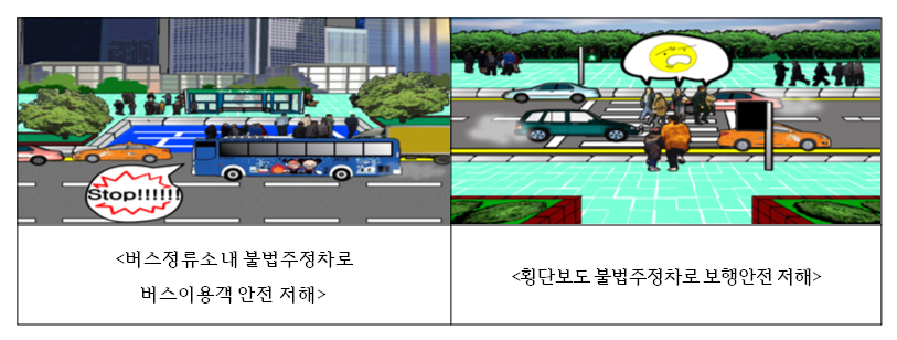 ♦ 시민안전저해형 장소에서의 불법 주 · 정차에 대해 단속 강화