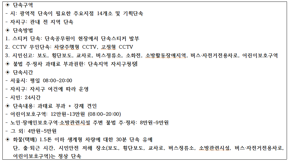 - 그 외 출 · 퇴근시간대 등 교통혼잡시간대에 불법 주· 정차로 안전과 소통에 지장을 초래할 가능성 있는 장소