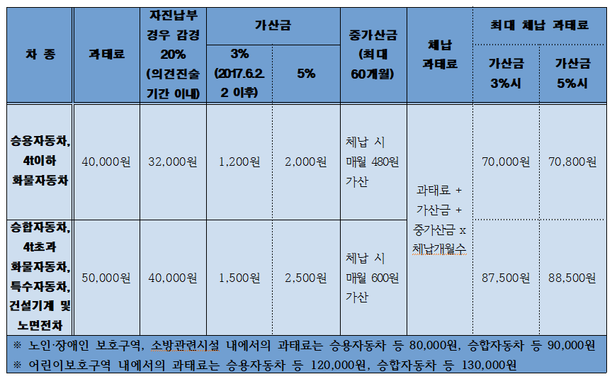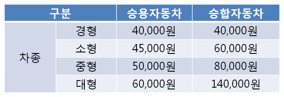 승용차 등 80,000원 → 120,000원, 승합차 등 90,000원 → 130,000원