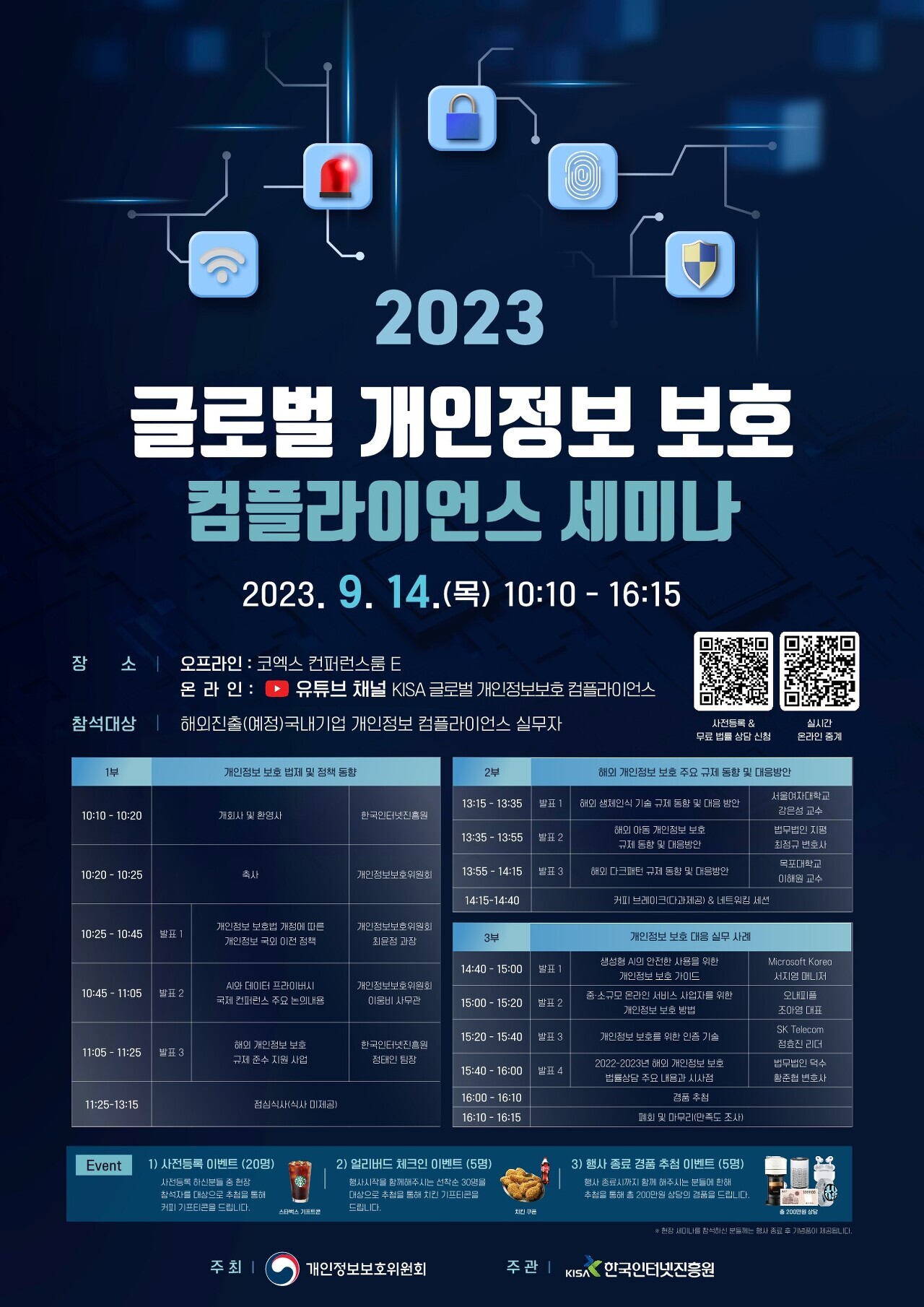 - 세미나 내용: 해외 개인정보 보호 법률 준수에 관한 정보와 무료 법률 상담 제공