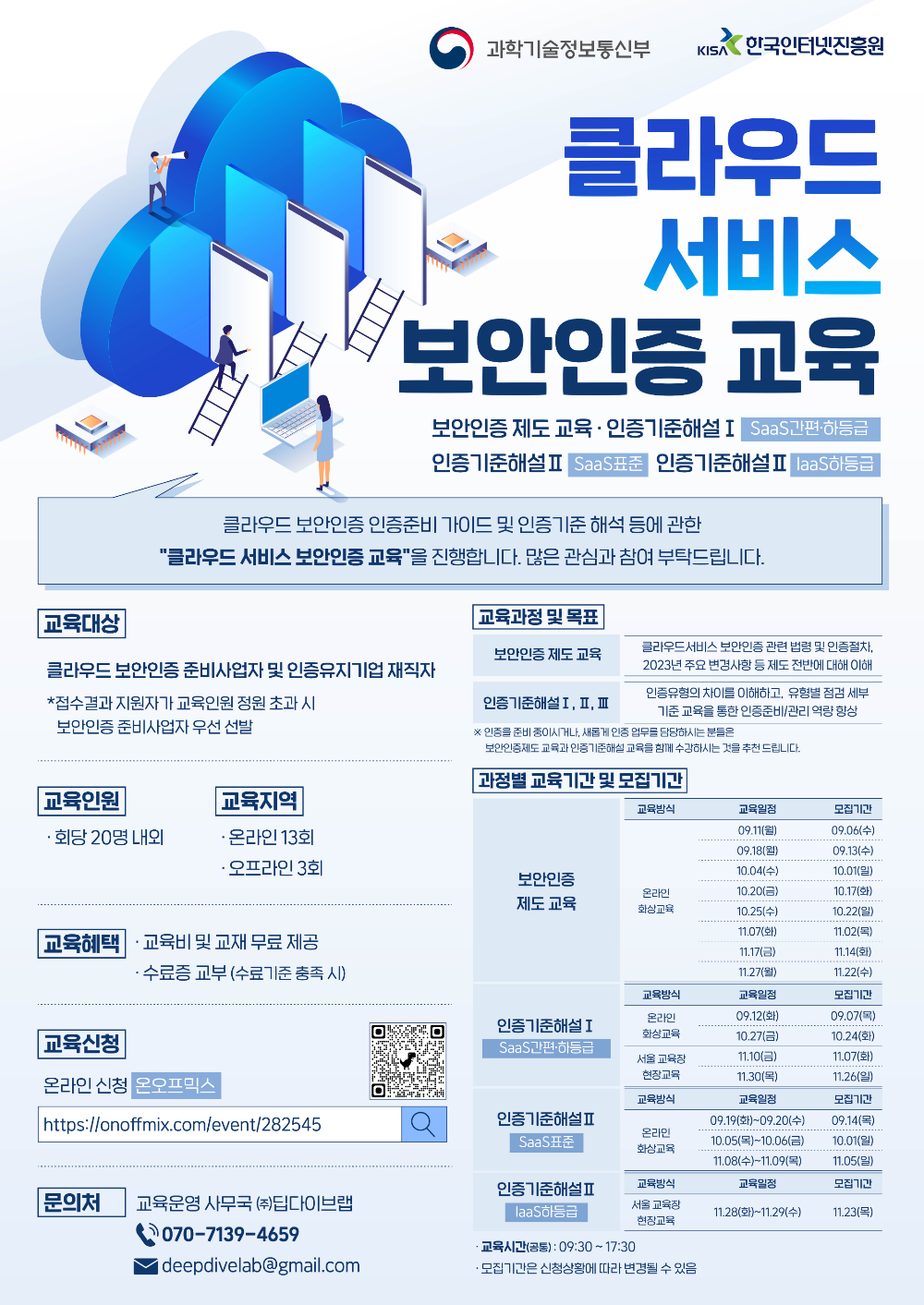 클라우드 보안인증 인증준비 가이드 및 인증기준 해석 등에 관한 "클라우드 서비스 보안인증 교육"을 진행합니다.