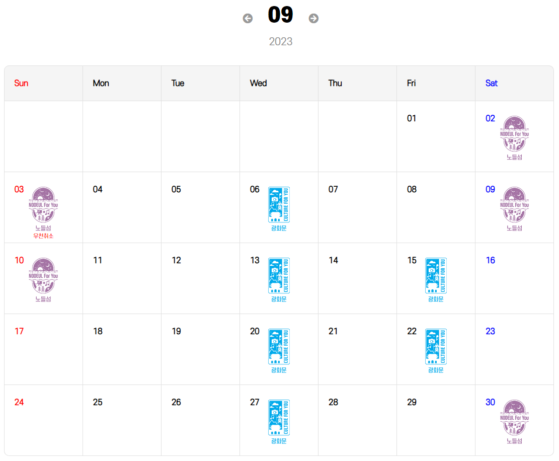 - 행사기간 : 4월 ~11월 ※노들섬은 5월부터 진행
