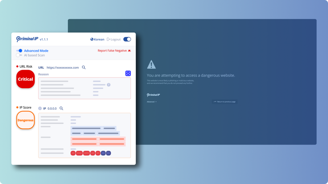 피싱 공격은 인터넷 사용자에게 큰 위협입니다. 하지만 이제 "Criminal IP Phishing Scams Link Checker"를 통해 더 이상 피싱에 속지 마세요!